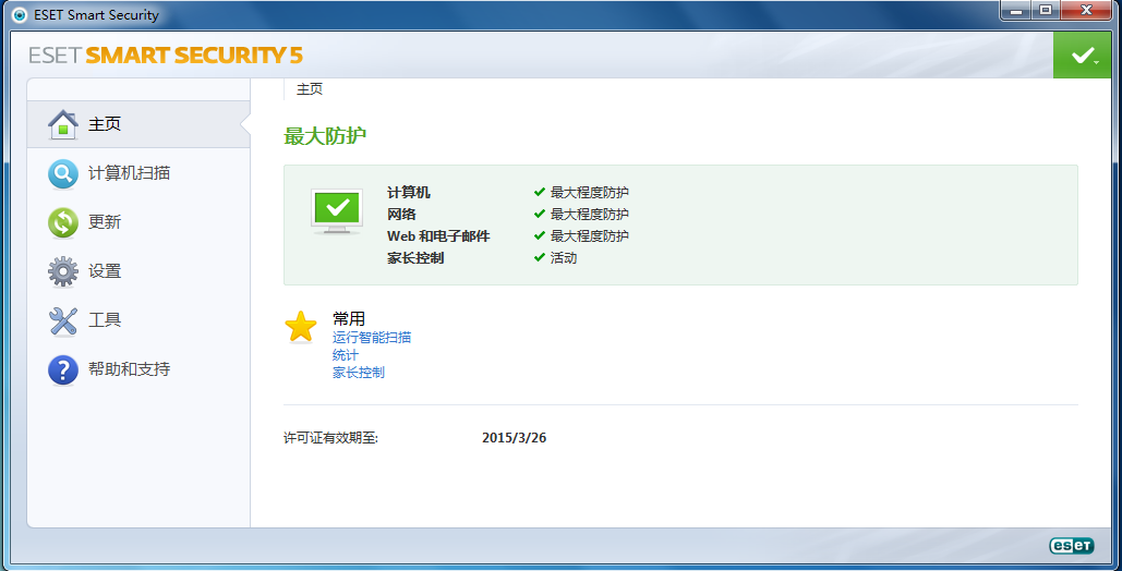重装系统后,还是选择了ESET,从官网下载的最新版ESET套装ESET SMART SECURITY 5。